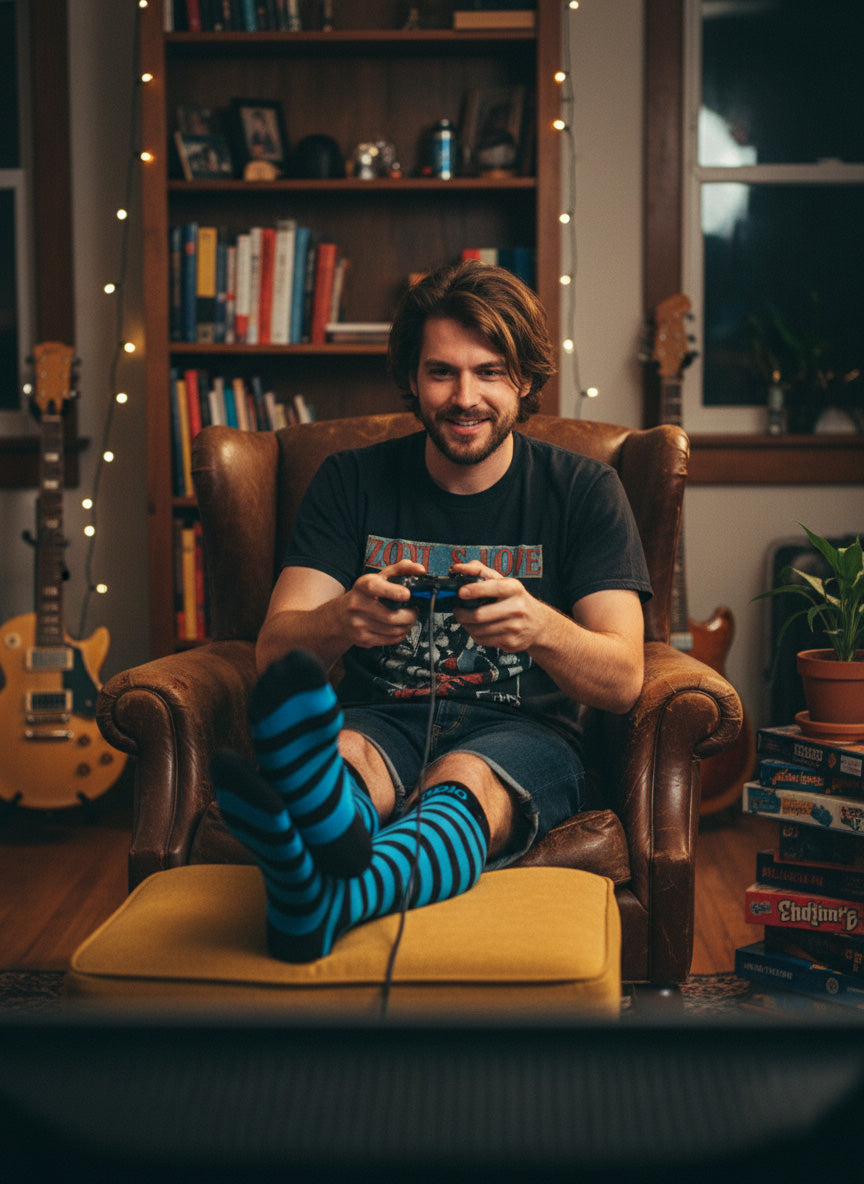Step into the future of foot and leg support with our Nexus Striped Knee High Compression Socks. Designed for the modern athlete and active individual, these socks feature a sleek black base with a dynamic, all-over blue geometric pattern that is as bold as it is functional. More than just a stylish accessory, they are engineered with advanced graduated compression technology to provide a targeted, firm pressure that is tightest at the ankle and gradually loosens up the leg. This helps to actively boost blood circulation, reduce swelling, and prevent the feelings of fatigue and heaviness in your legs. Whether you're in the middle of a high-intensity workout, enduring a long day on your feet, or recovering after a race, the Cyber-Grid Compression Socks are your key to enhanced performance and lasting comfort.